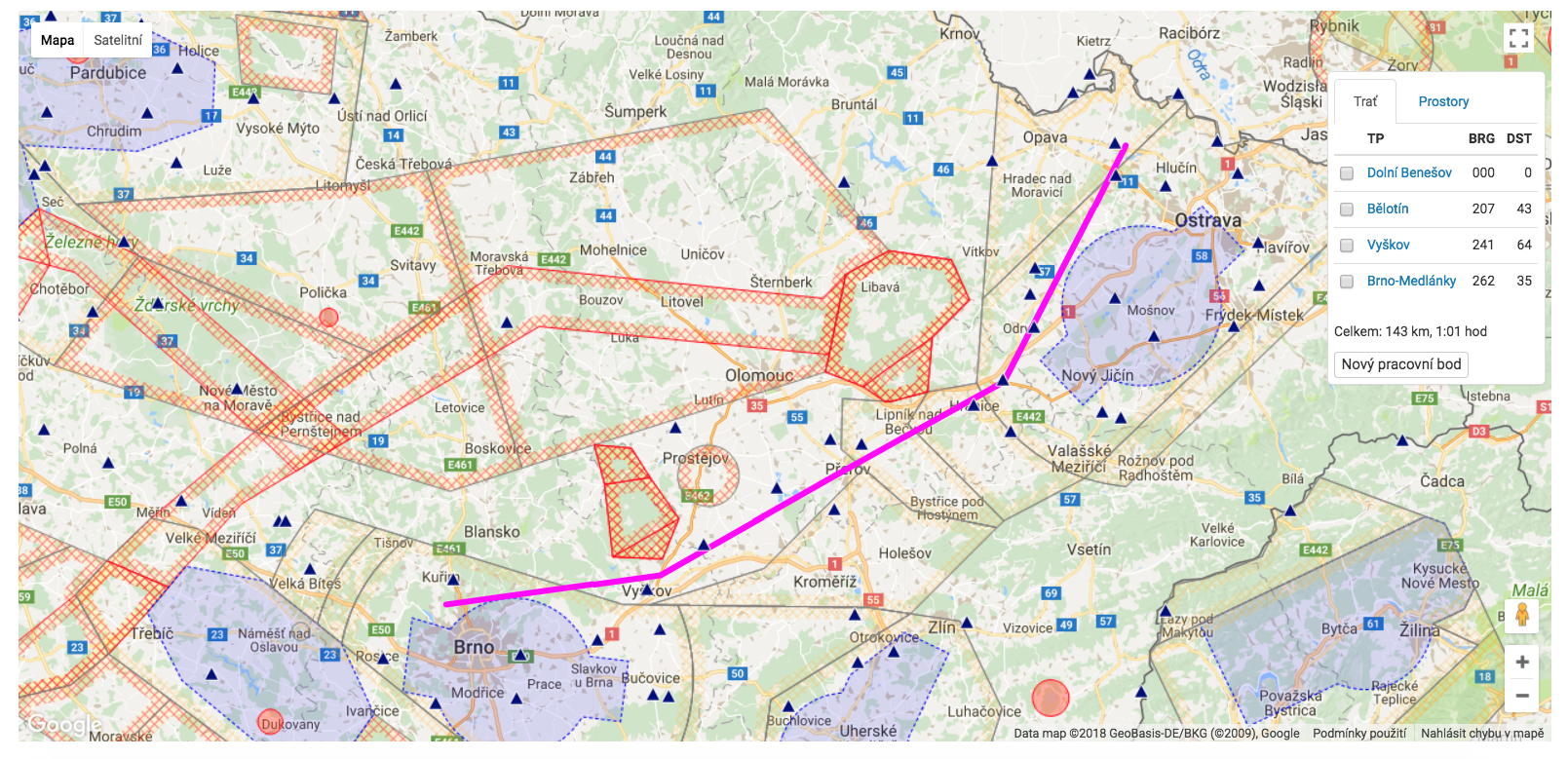 S tou trasou mas pravdu, ted jsem si to poskladal na Airquestu a kdyz jsem si dal body tak, abych se vyhnul omezenym nebo zakazanym oblastem, tak celkem v pohode trasa a da se to obletet severne od CTR LKTB... Kdyz jsem tam dal rychlost 140 (kdybych letel tim pomalym prckoletem), tak hodka letu... A BTW i kdyby na Medlankach nebyl AFISak, tak s ATC na LKTB nebudu muset mluvit, proste vlitnu do ATZ Medlanek a budu vysilat naslepo... V Zabrehu jsem na AFIS jeste nikoho nezazil, tam vysilam naslepo tedka v zime porad...